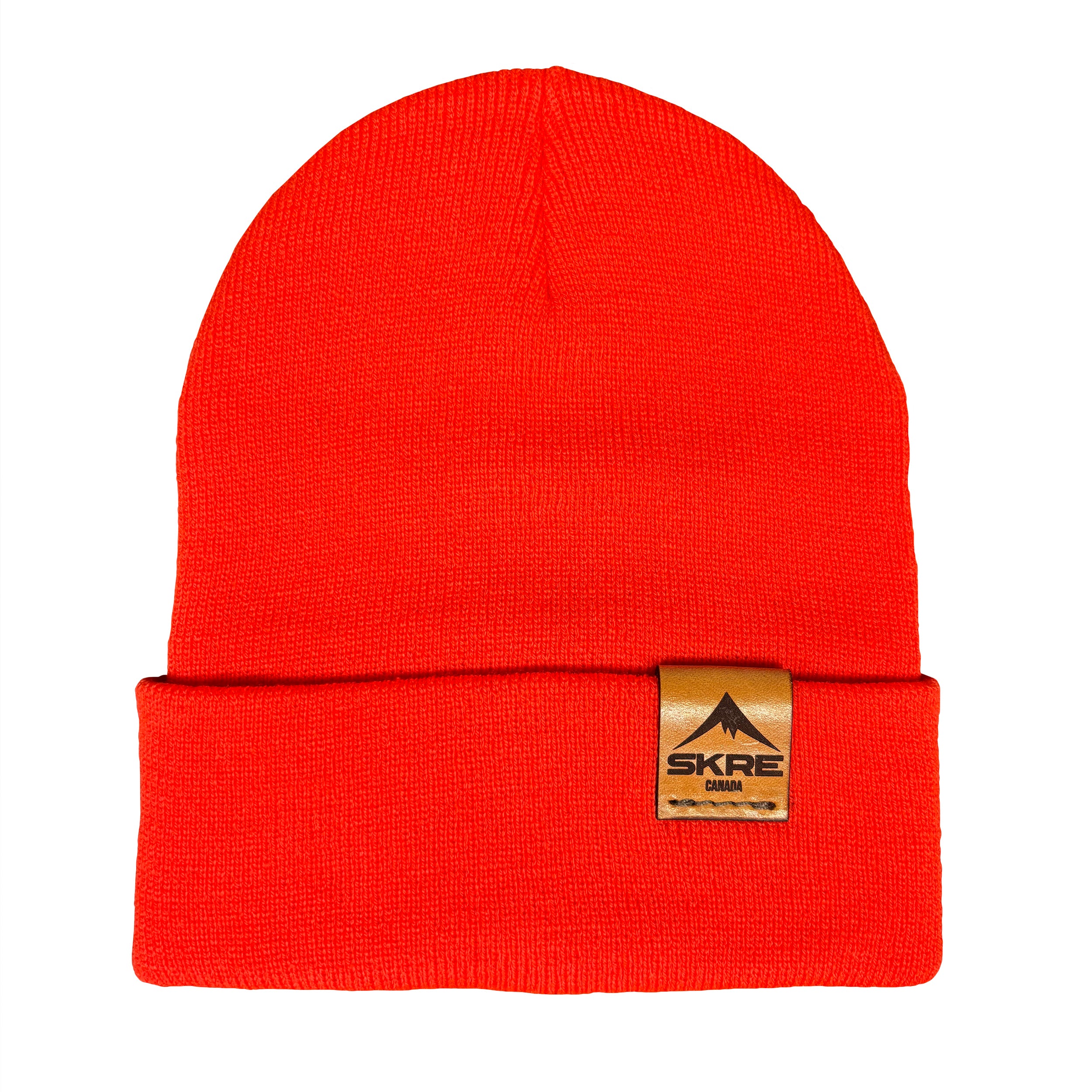 The SKRE Canada Leather Tag Toque is crafted from 50/50 acrylic/polyester fabric. This Cuffed Beanie delivers both comfort and durability. Its 12" knit length adds a touch of sophistication, while the adjustable cuff allows for a customized fit. With a standard length of 3", you can adapt the cuff to your preferred style.